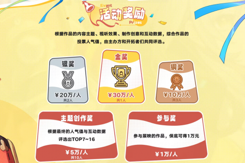除了实质性的奖励外,主办方还给予了创作者作品更多的曝光机会,即使是新人也能在这次联欢盛典2.0中得到大展身手的机会以及官方流量的扶持,从而让优秀的作品能够面向玩家。
