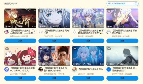 其次便是更为公平的同人赛事机制。新老人之间的粉丝差距问题在比赛中难以避免,而为了减小粉丝量带来的影响以及新人影响力有限的问题,这次联欢盛典2.0中的作品释出后将按粉丝量从低到高,分组释放,组内随机播放的设定则进一步削弱了粉丝基础带来的影响。而在观众投票这,作品随机展示的设定让新人也能够有更多被看到的机会。种种调整,确实能看到主办方的思虑。